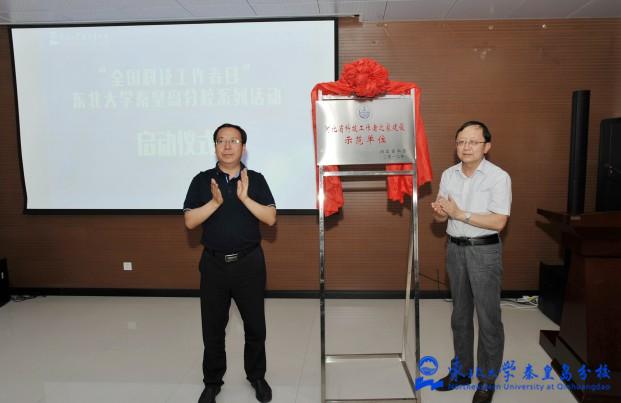 5月30日下午,全国科技工作者日东北大学秦皇岛分校系列活动启动仪式在科技楼9024室举行。秦皇岛市科学技术协会主席骆德新,秦皇岛市科技局副局长盛清华,秦皇岛市科技馆馆长王宁,我校副校长李晓奇以及师生代表等共计100余人参加活动,活动由科技处处长郭戈主持。