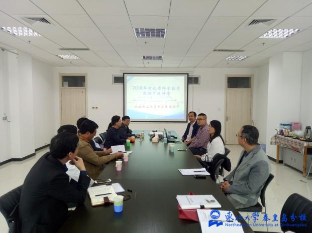 5月15日,为了提高我校河北省科学技术奖的申报质量,科技处邀请燕山大学河北省自然科学奖二等奖获得者杨洪玖、河北省科技进步奖一等奖获得者俞滨来校,在人文楼536室为我校教师做申报“河北省科学技术奖”培训会。科技处处长郭戈主持会议。