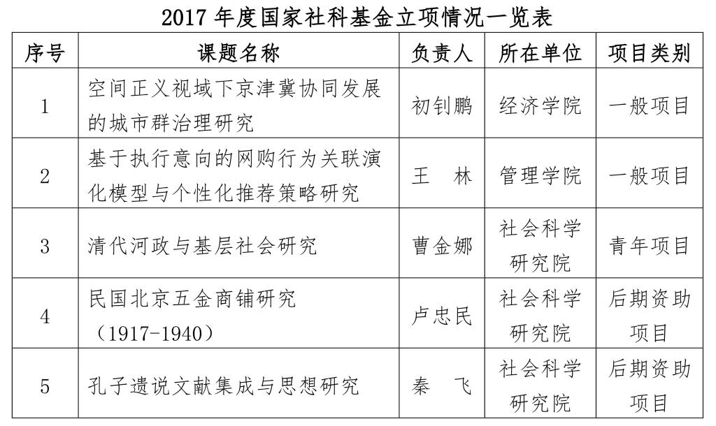 近日,经国家社会科学基金学科评审组评审,全国哲学社会科学规划领导小组批准,我校获批“2017年度国家社会科学基金项目”5项,创历史新高。其中,一般项目2项,青年项目1项,后期资助项目2项。获批资助经费总计100万元。年度项目立项率为15.8%,高于全国14.6%的平均立项率。具体立项名单如下: