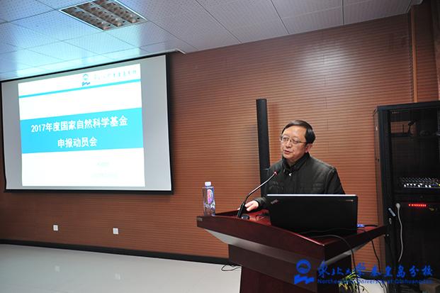 会议旨在做好我校2017年度国家自然科学基金的申报工作,充分调动广大教师申报国家自然科学基金项目的积极性,引导教师深入理解、准确把握国家自然科学基金委2017年度对项目资助格局及资助政策的调整,确保有申报意向的教师能够合理选择申报类别、规范执行申报流程。会上,王国仁教授简要介绍了2016年度东北大学科研整体情况,他指出分校获批国家自然科学基金数量已经成为东北大学的重要增长点,他鼓励分校教师坚定信心、认真准备,争取在面上项目、重点项目取得新突破。杨光红教授分别从申报前的准备工作、申请书的写作、项目评审要点三个方面进行讲解,重点介绍了申请书各部分内容的写作要点与技巧,对我校教师具有很强的启发性和指导性。盛群详细介绍了2016年国家自然科学基金委财政预算与资助计划、项目申请情况、项目资助情况,2016年东北大学国家自然科学基金项目申请与资助情况,2017年国家自然科学基金项目申请注意事项、在线申请各项工作安排。张剑飞分别从2016年度国家自然科学基金项目资金决算编报、2017年度国家自然科学基金项目资金申请预算编报以及科研经费管理相关事项进行了详细说明。