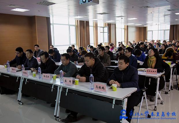 1月5日,科技处主办的2017年度国家自然科学基金申报动员会在科技楼9024报告厅举行。会议邀请了东北大学校长助理兼科技处处长王国仁、研究生院常务副院长杨光红、科技处副处长盛群、科研经费服务中心主任张剑飞担任主讲,分校副校长李晓奇主持会议,分校科技处处长马振鹤、财经处处长王庆东参加会议。我校近150名教师参加了动员会。