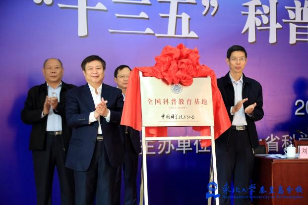 王康友、许顺斗共同为我校“全国科普教育基地”揭牌,并颁发证书。王康友、郑念共同进行了《中国科普人才发展报告(2015)》蓝皮书首发式。